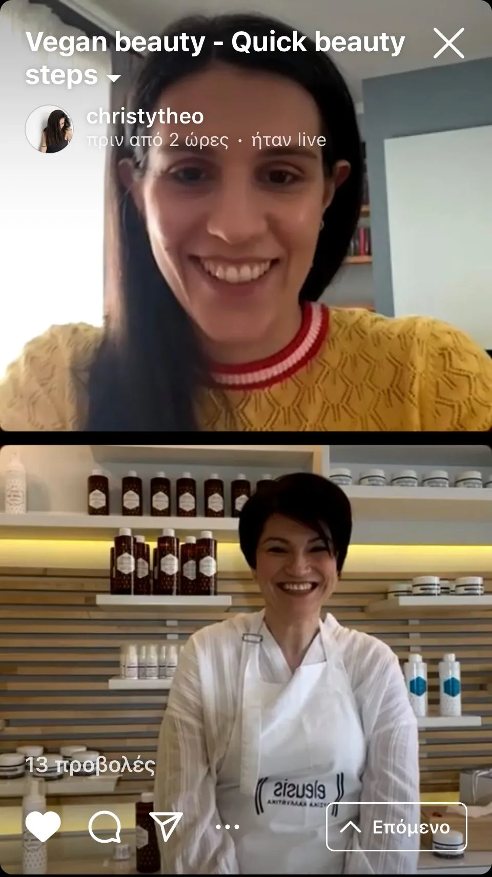 Instagram Live με την δημοσιογράφο @christytheo για Vegan καλλυντικά, βιταμίνη C και καθαρισμός